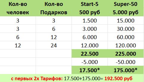 Все участники делают Подарки друг другу во всех тарифах Безвозмездно.